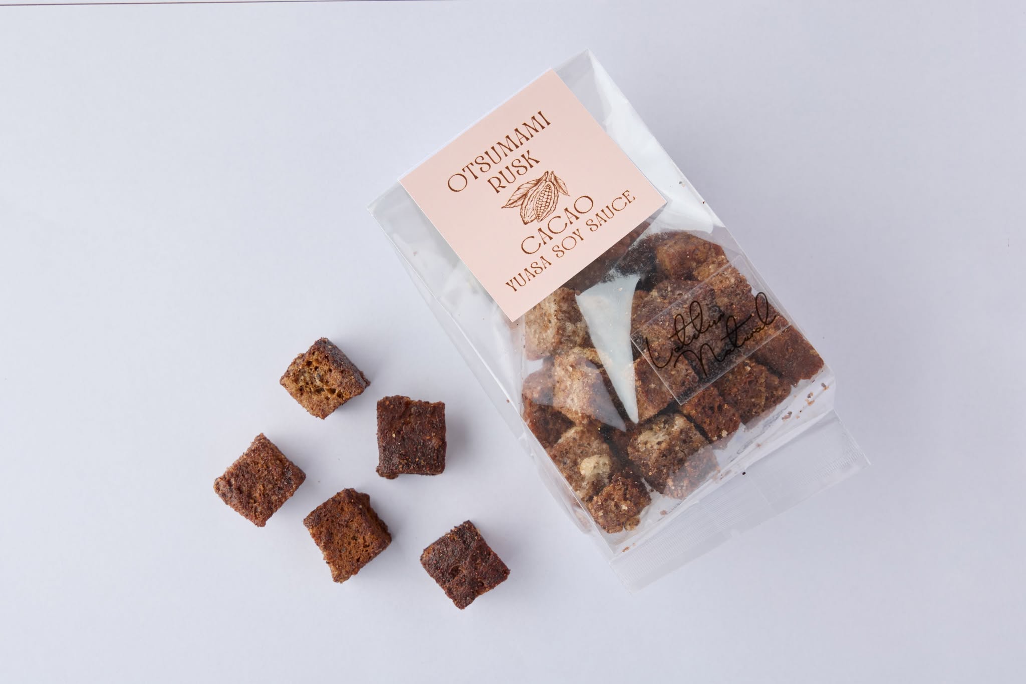 湯浅醤油さんのもろみをまとったカカオパンが「おつまみラスク」に。ぽりぽりサクサクっと一口ごとに広がる風味豊かなラスクです。