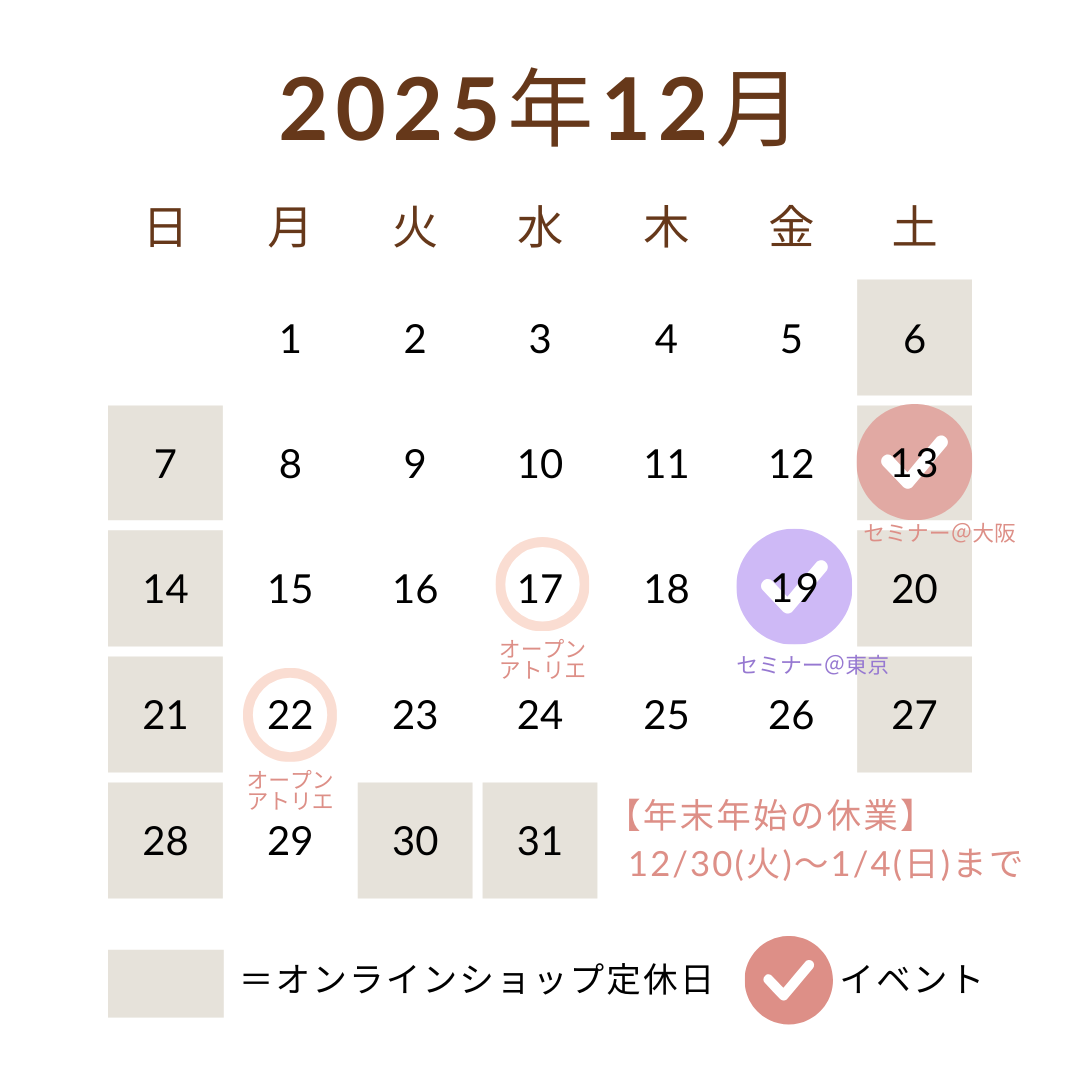 ◆年末年始 休業期間:2025年12月30日(火)から2026年1月4日(日)まで