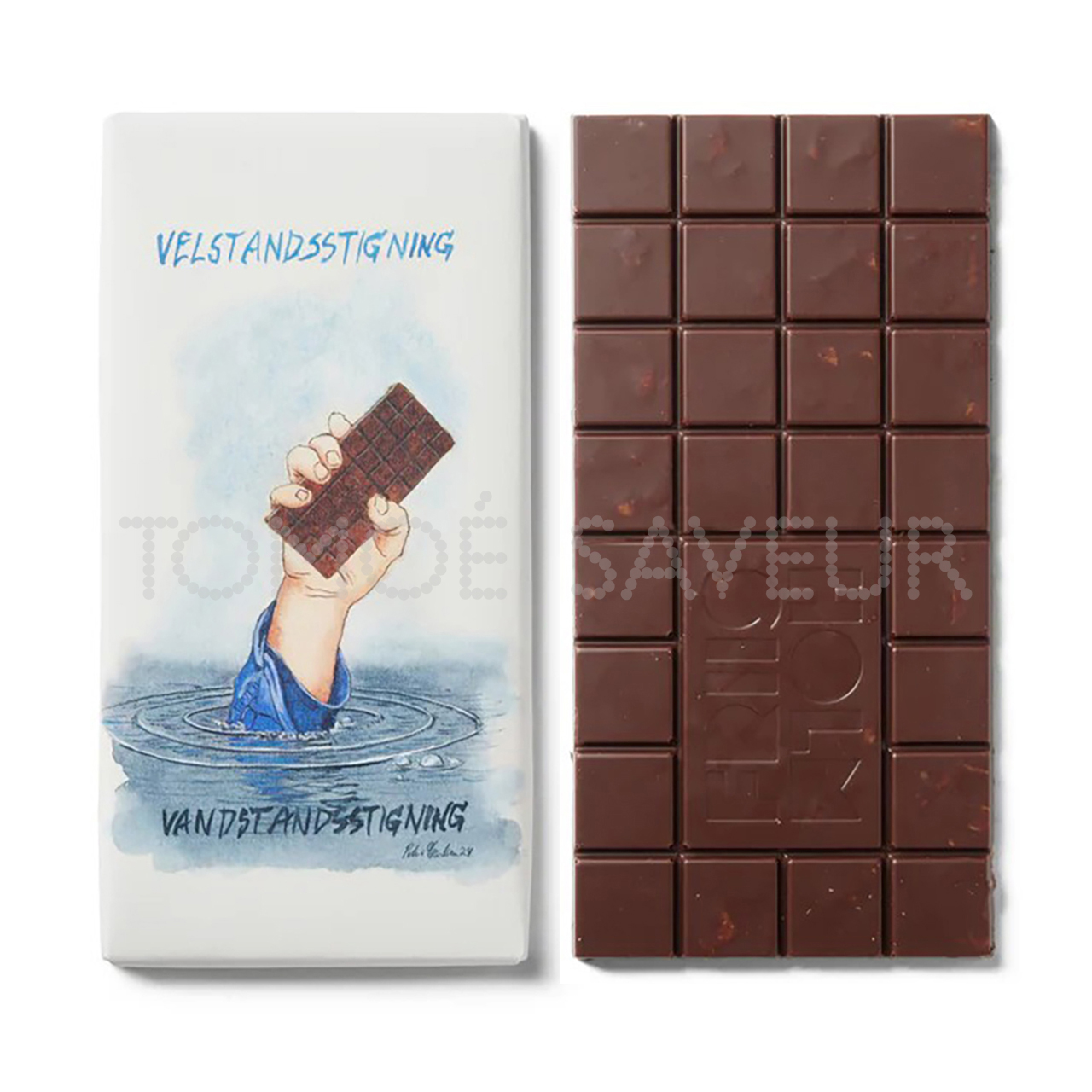 パッケージのイラストは「Wealth Increase / Tide Increase」をテーマにデザインされ、豊かさや幸せが広がることへの願いとともに、潮の上昇、つまり地球温暖化にも目を向けてほしい、という思いが込められています。チョコレートを味わうひとときが、未来や地球へのやさしい気持ちにつながりますように、という作り手からのメッセージです。